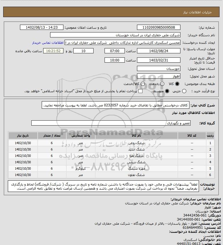 نام دستگاه خریدار:شرکت ملی حفاری ایران در استان خوزستان