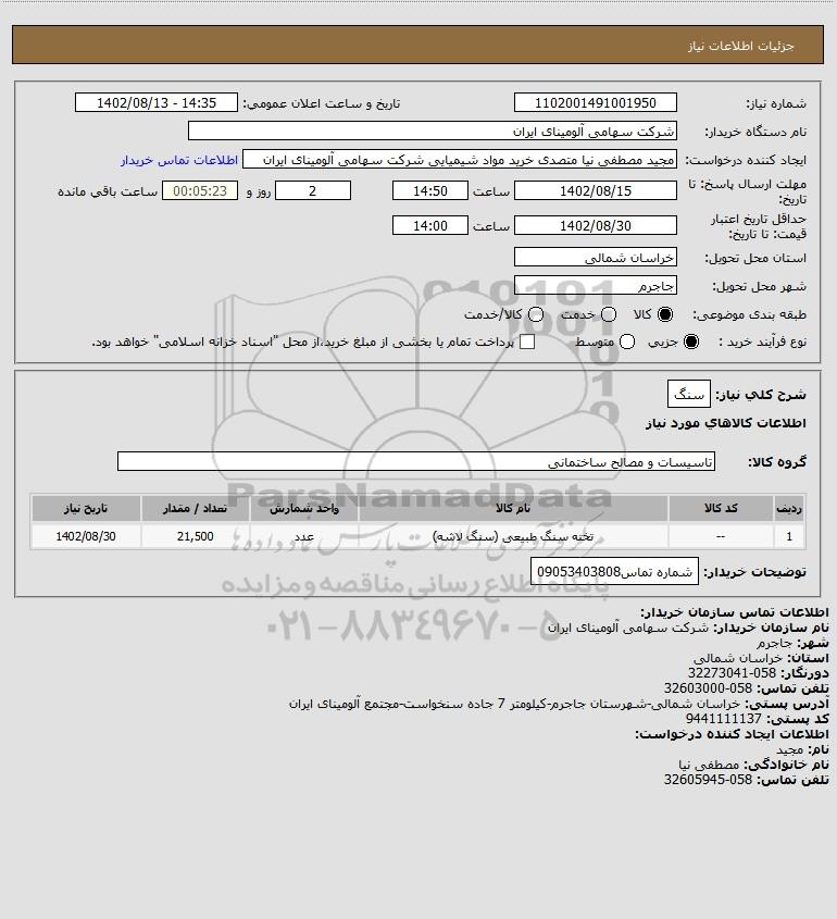نام سازمان خریدار: شرکت سهامی آلومینای ایران