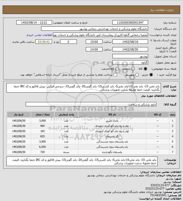 | 6 | -- | باند پانسمان بدون چسبندگی | عدد | 6,000 | 1402/08/30 |