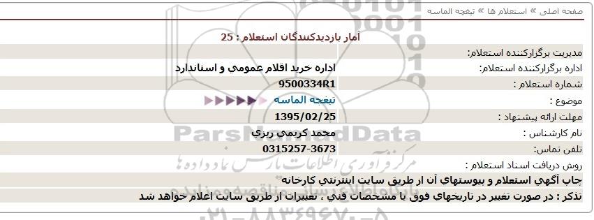 اداره برگزارکننده استعلام: اداره خرید اقلام عمومی و استاندارد