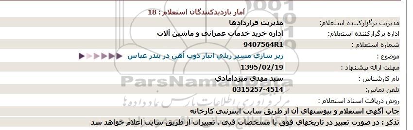 اداره برگزارکننده استعلام: اداره خرید خدمات عمرانی و ماشین آلات