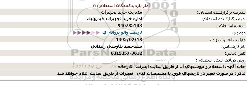 اداره برگزارکننده استعلام: اداره خرید تجهیزات هیدرولیك