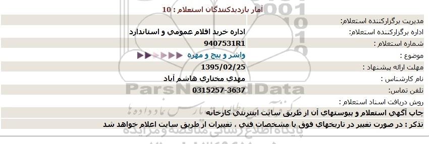 اداره برگزارکننده استعلام: اداره خرید اقلام عمومی و استاندارد