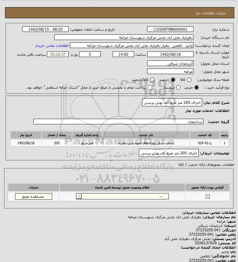 شرح کلی نیاز: اجرای 205 متر مربع کف پوش پرسی