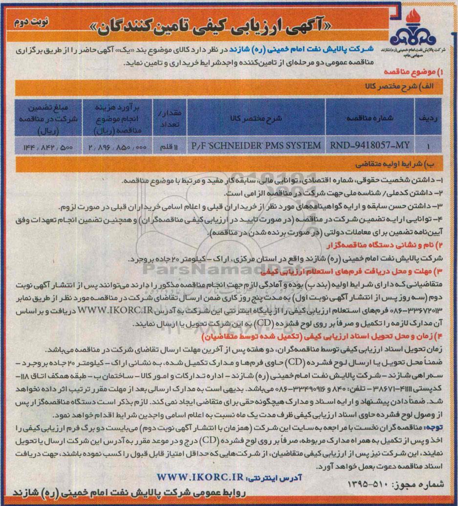 مناقصه SCHNEIDER PMS SYSTEM نوبت دوم , مناقصه ,مناقصه SCHNEIDER PMS SYSTEM نوبت دوم
