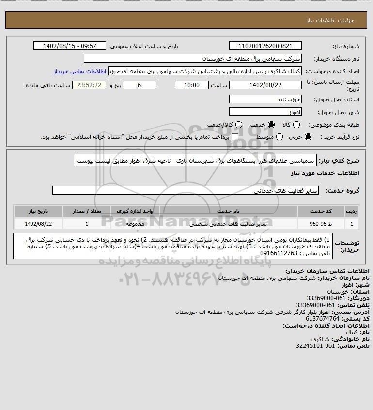 نام دستگاه خریدار:شرکت سهامی برق منطقه ای خوزستان
