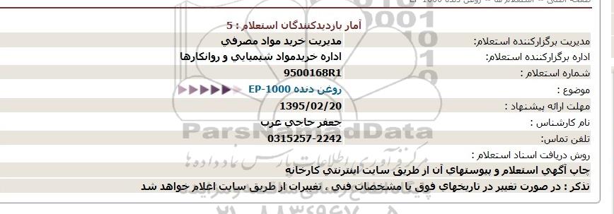 اداره برگزارکننده استعلام: اداره خریدمواد شیمیایی و روانكارها