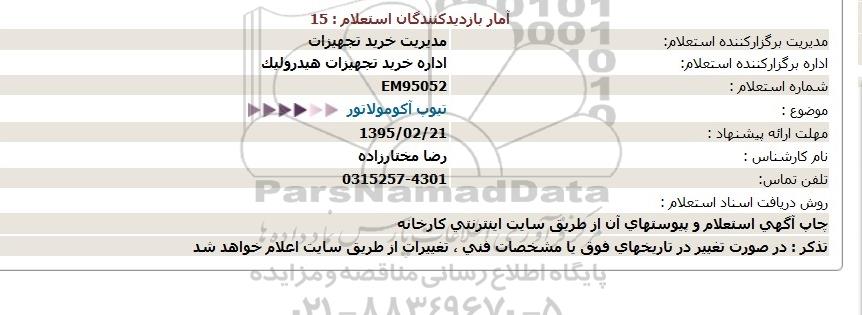 اداره برگزارکننده استعلام: اداره خرید تجهیزات هیدرولیک