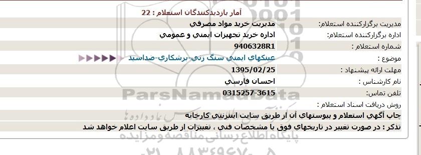 اداره برگزارکننده استعلام: اداره خرید تجهیزات ایمنی و عمومی