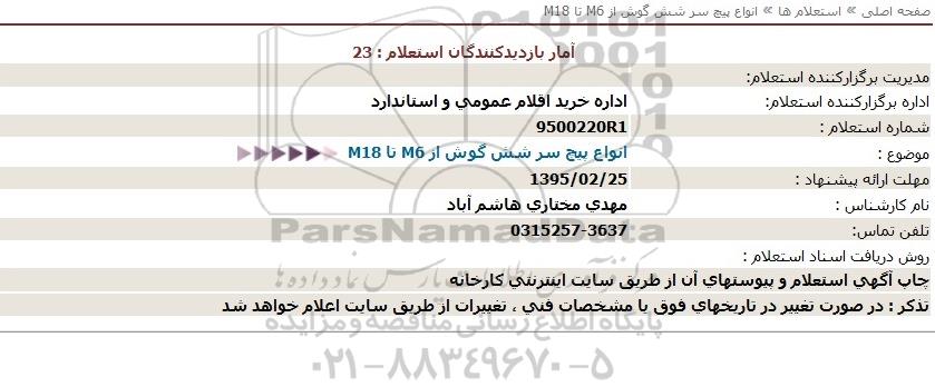 اداره برگزارکننده استعلام: اداره خرید اقلام عمومی و استاندارد