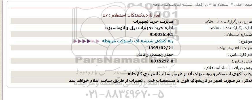 اداره برگزارکننده استعلام: اداره خرید تجهیزات برق و اتوماسیون