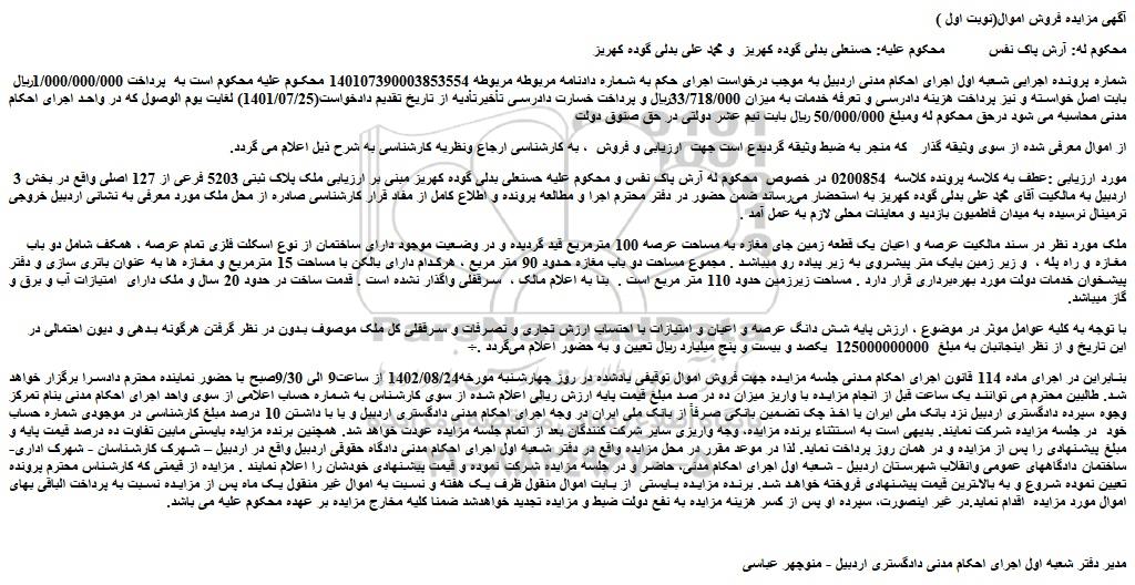 شعبه صادر کننده:شعبه اول اجرای احکام مدنی دادگستری شهرستان اردبیل/قدیم