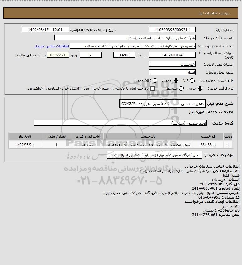 توضیحات خریدار:محل کارگاه تعمیرات تجهیز الزاما باید کلانشهر اهواز باشد .