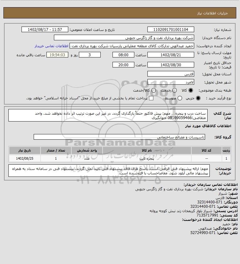 نام دستگاه خریدار:شرکت بهره برداری نفت و گاز زاگرس جنوبی
