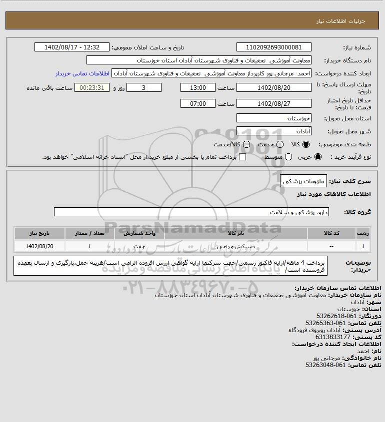 نام دستگاه خریدار:معاونت آموزشی تحقیقات و فناوری شهرستان آبادان استان خوزستان