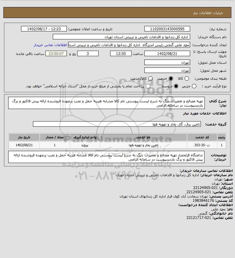 نام دستگاه خریدار: اداره کل زندانها و اقدامات تامینی و تربیتی استان تهران