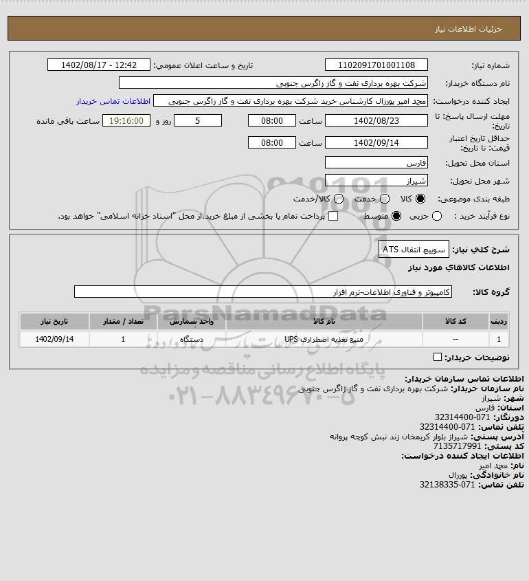 | 1 | -- | منبع تغذیه اضطراری UPS | دستگاه | 1 | 1402/09/14 |