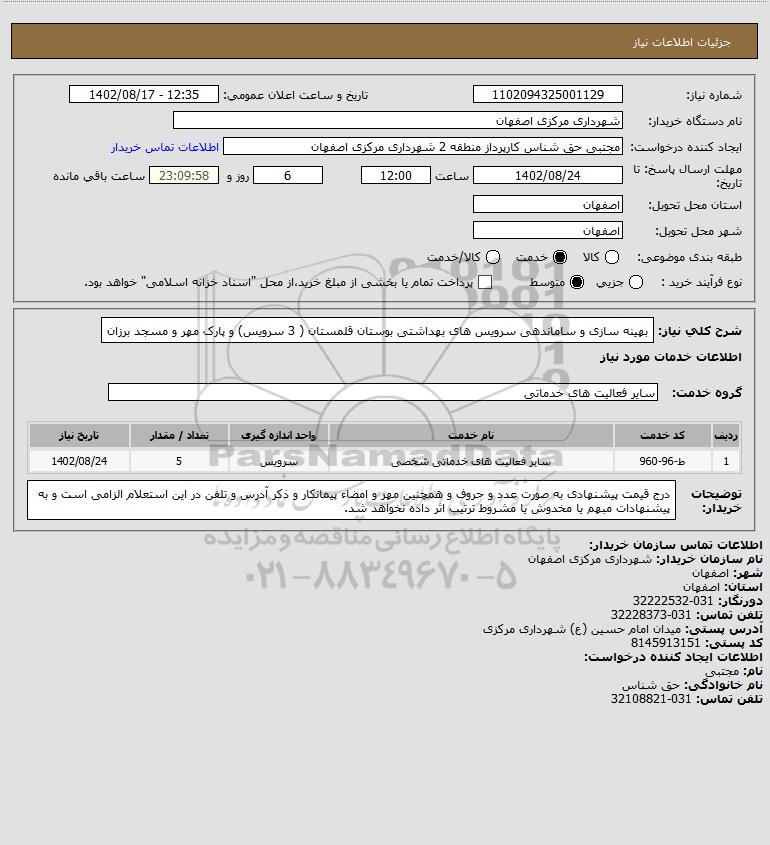 نام دستگاه خریدار:شهرداری مرکزی اصفهان