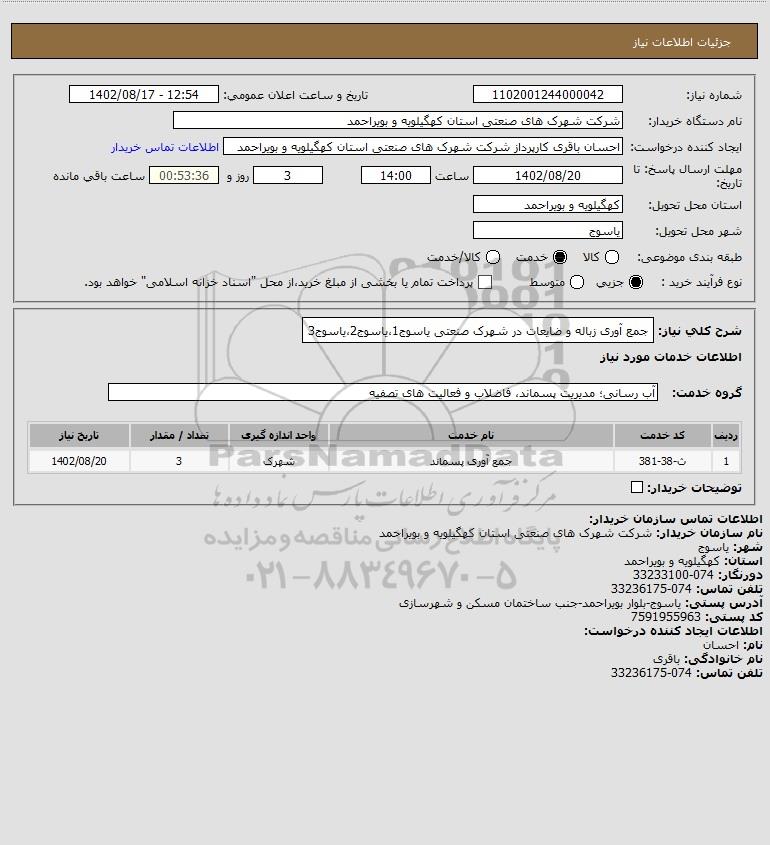 شرح کلی نیاز: جمع آوری زباله و ضایعات در شهرک صنعتی یاسوج1،یاسوج2،یاسوج3