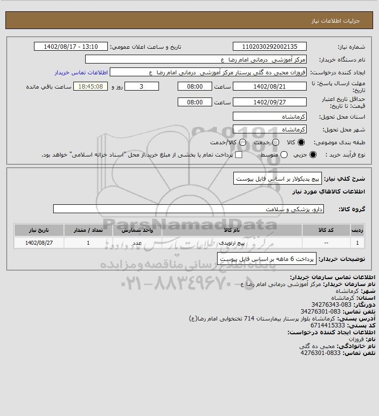 | 1 | -- | پیچ ارتوپدی | عدد | 1 | 1402/08/27 |
