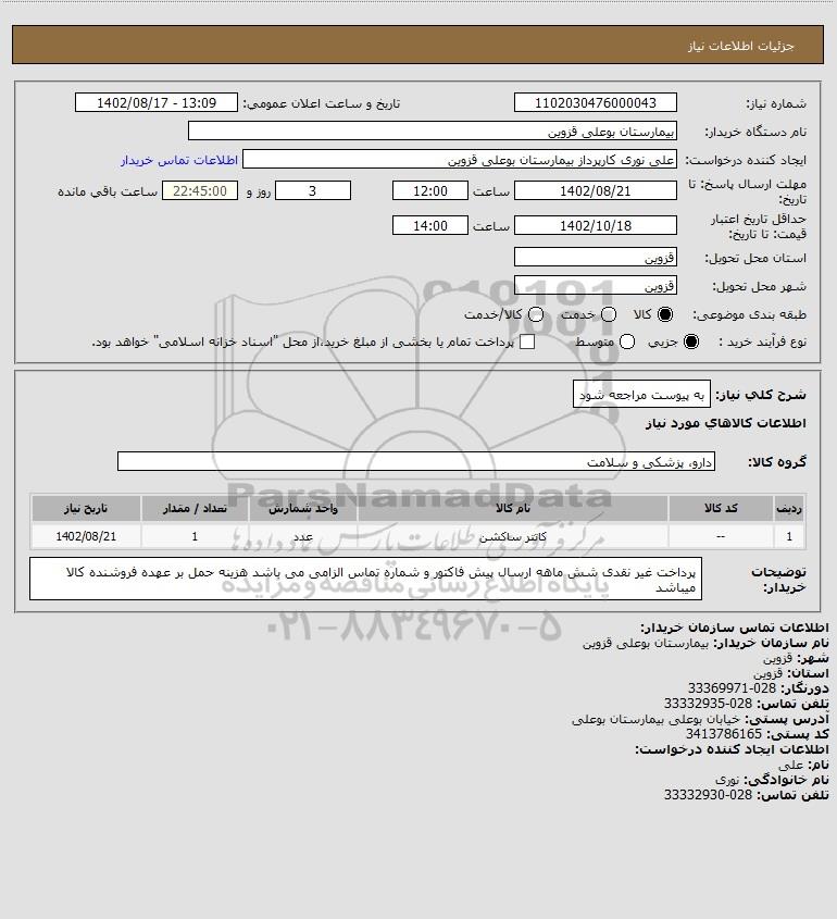 نام دستگاه خریدار:بیمارستان بوعلی قزوین