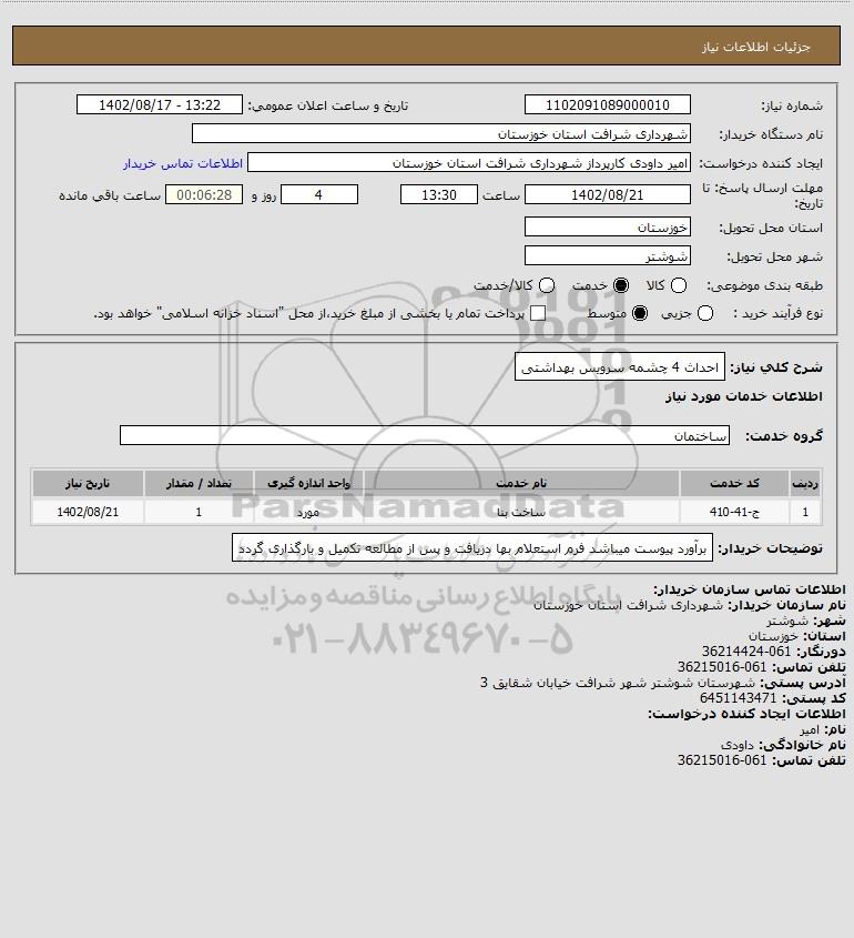 استعلام احداث 4 چشمه سرویس بهداشتی, استعلام احداث 4 چشمه سرویس بهداشتی