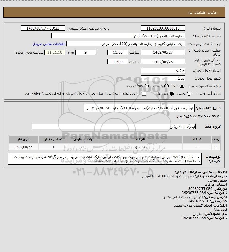 استعلام لوازم مصرفی اجرای بانک خازن(نصب و راه اندازی)بیمارستان والفجر تفرش, استعلام لوازم مصرفی اجرای بانک خازن(نصب و راه اندازی)بیمارستان والفجر تفرش