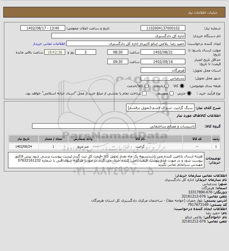 استعلام سنگ گرانیت -شورای قشم-(تحویل درقشم), استعلام سنگ گرانیت -شورای قشم-(تحویل درقشم)