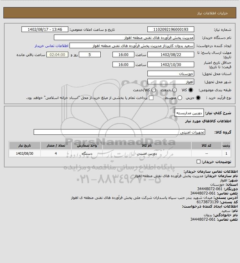 نام دستگاه خریدار:مدیریت پخش فرآورده های نفتی منطقه اهواز