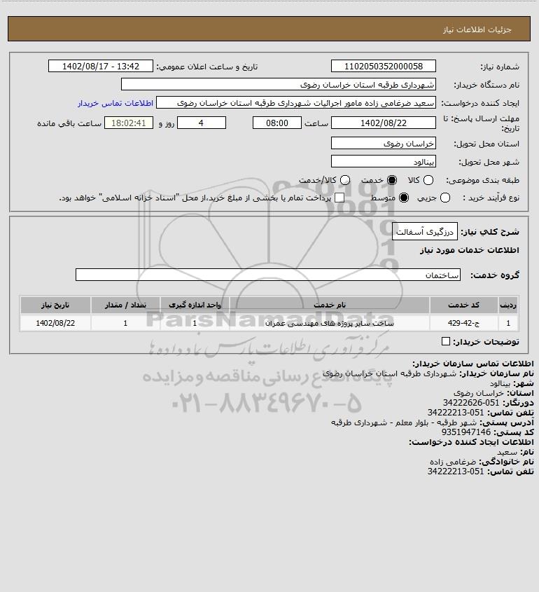 نام دستگاه خریدار:شهرداری طرقبه استان خراسان رضوی