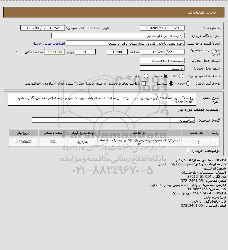 نام دستگاه خریدار:بیمارستان ایران ایرانشهر