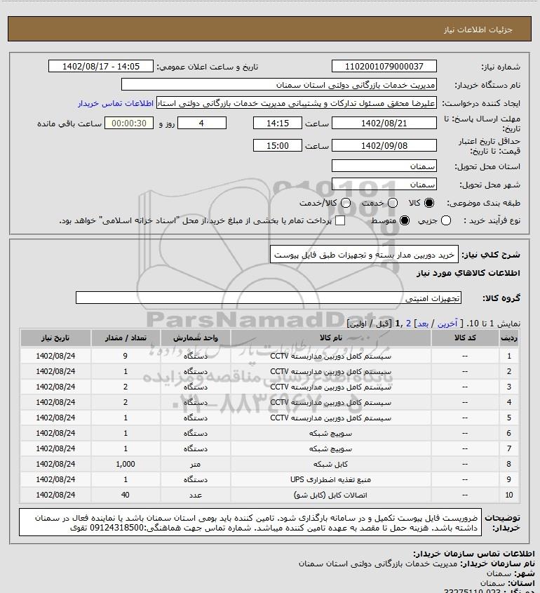 | 2 | -- | سیستم کامل دوربین مداربسته CCTV | دستگاه | 1 | 1402/08/24 |