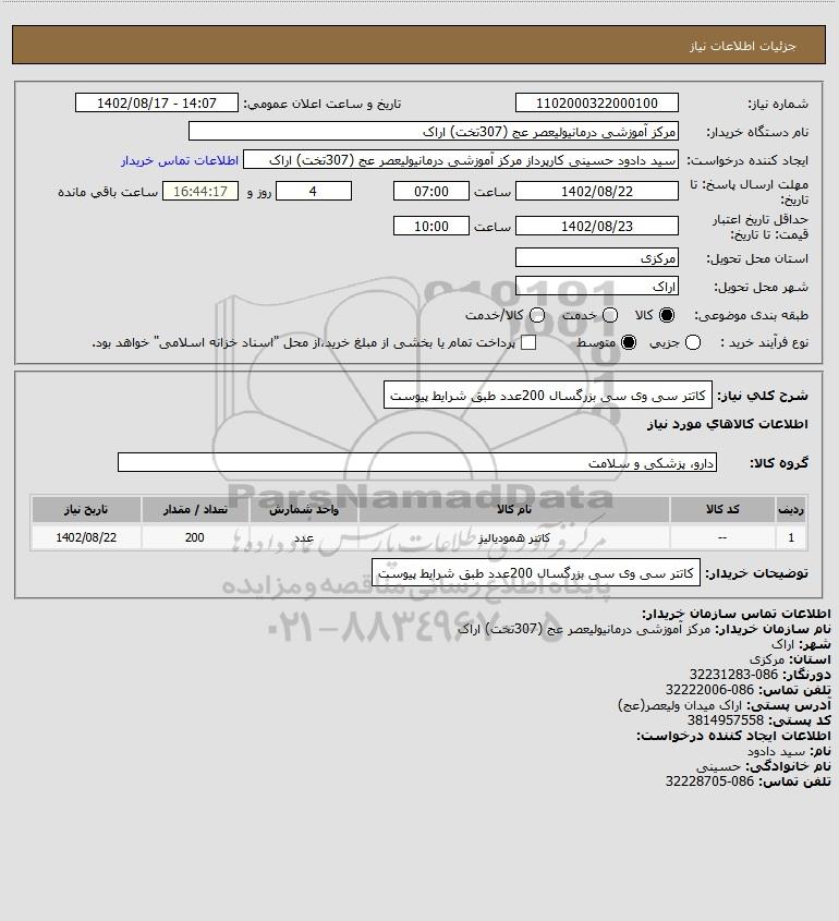 شرح کلی نیاز: کاتتر سی وی سی بزرگسال 200عدد طبق شرایط پیوست