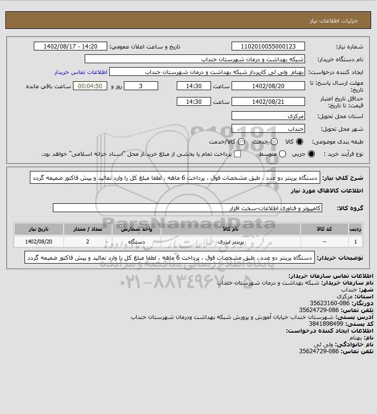 نام دستگاه خریدار:شبکه بهداشت و درمان شهرستان خنداب