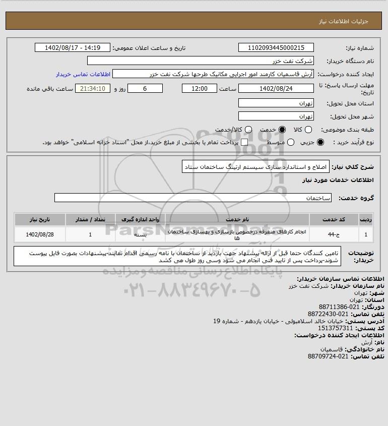 جهت دریافت اطلاعات کامل این آگهی به سامانه ستاد ایران مراجعه فرمایید