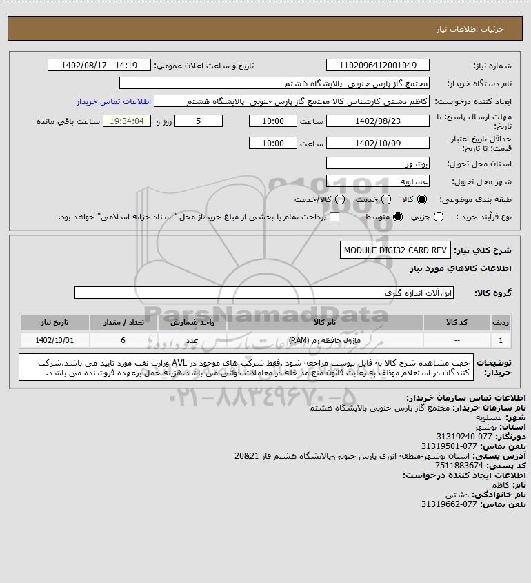 شرح کلی نیاز: MODULE DIGI32 CARD REV