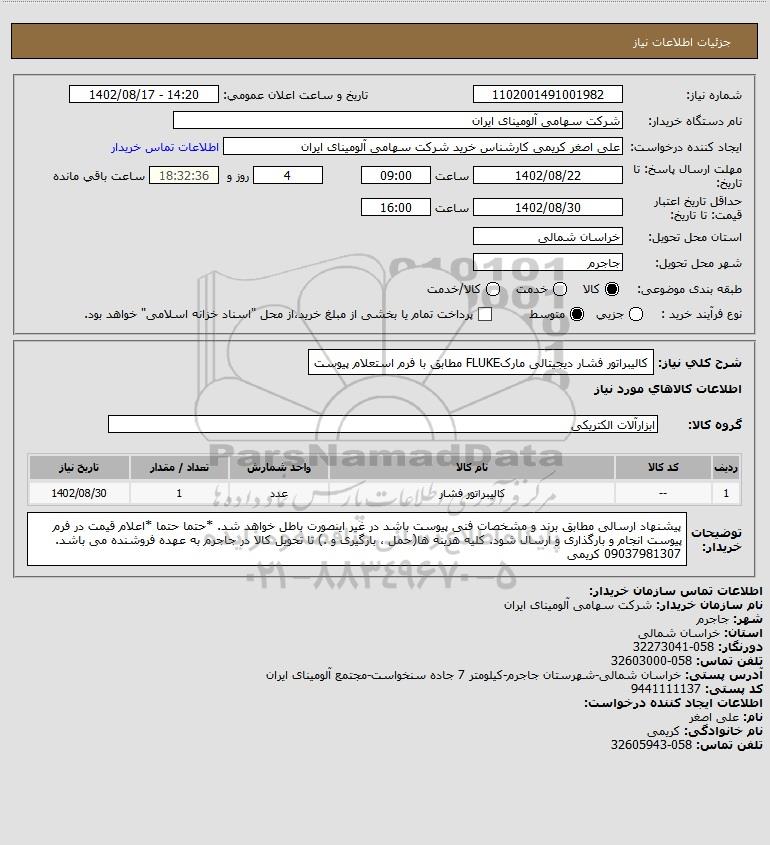 استعلام کالیبراتور ‎فشار‏ ‎دیجیتالی مارکFLUKE مطابق با فرم استعلام پیوست, استعلام کالیبراتور ‎فشار‏ ‎دیجیتالی مارکFLUKE مطابق با فرم استعلام پیوست