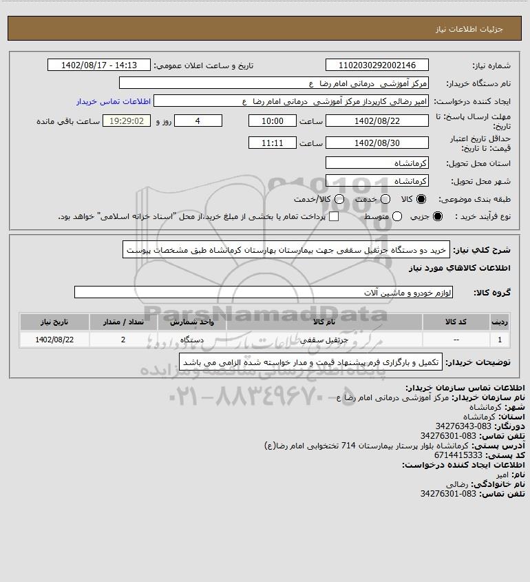 نام دستگاه خریدار:مرکز آموزشی درمانی امام رضا ع