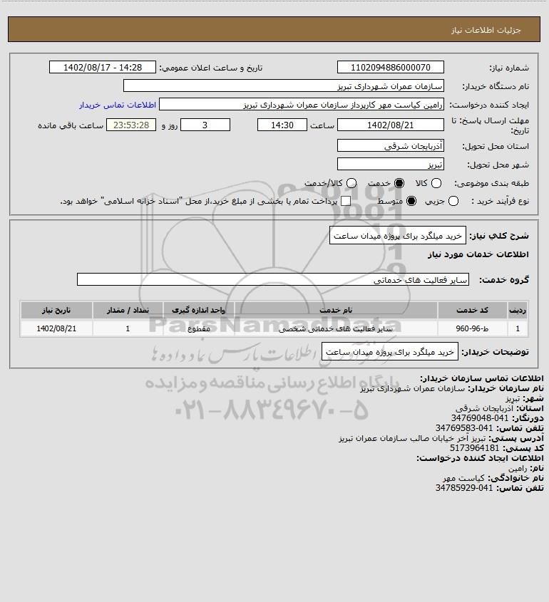 نام دستگاه خریدار:سازمان عمران شهرداری تبریز