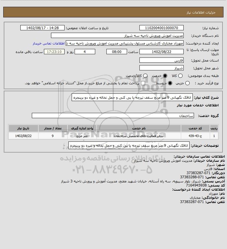 نام دستگاه خریدار:مدیریت اموزش وپرورش ناحیه سه شیراز