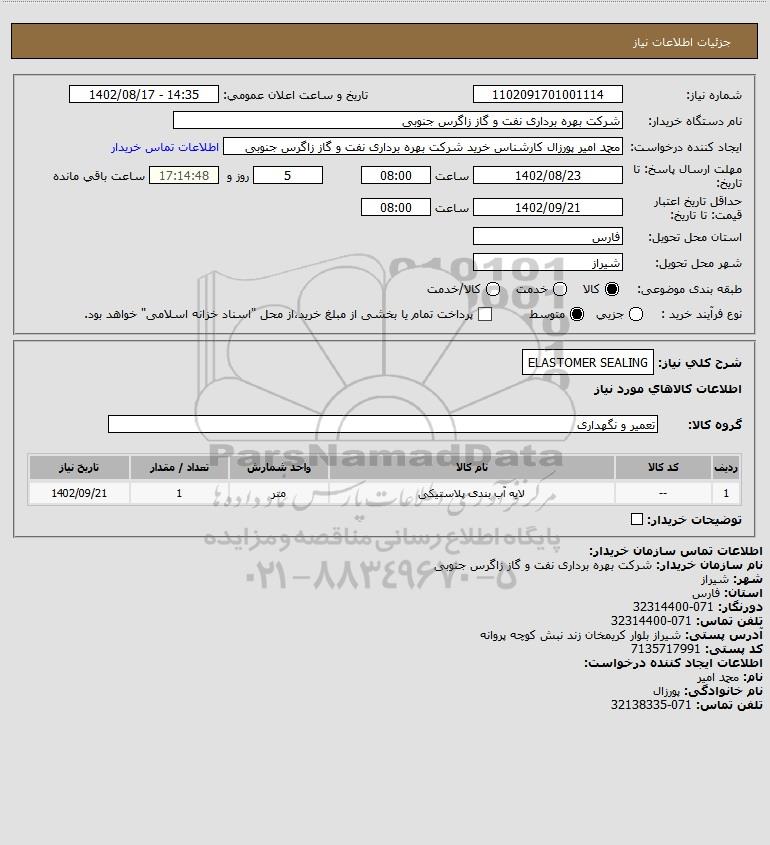 نام دستگاه خریدار:شرکت بهره برداری نفت و گاز زاگرس جنوبی