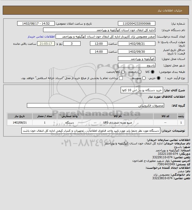شرح کلی نیاز: خرید دستگاه یو پی اس 10 کاوا