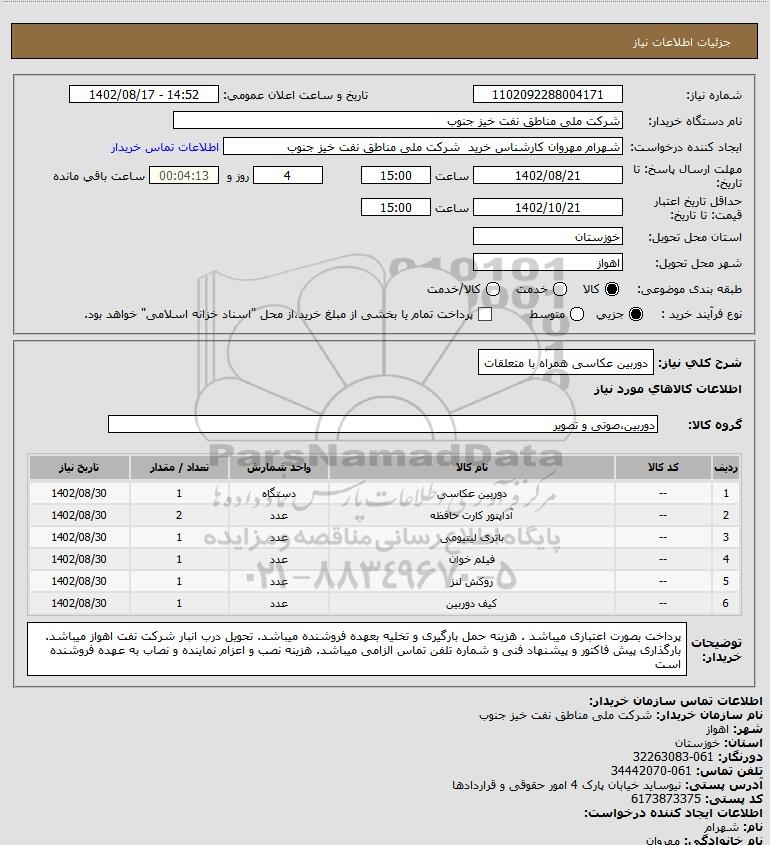 | 6 | -- | کیف دوربین | عدد | 1 | 1402/08/30 |