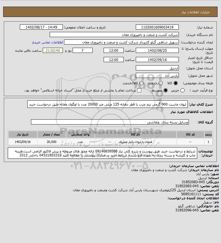 نام دستگاه خریدار:شرکت کشت و صنعت و دامپروری مغان