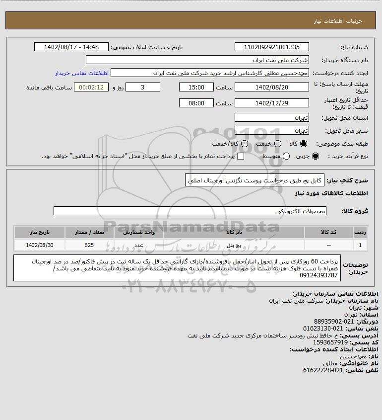 شرح کلی نیاز: کابل پچ طبق درخواست پیوست نگزنس اورجینال اصلی