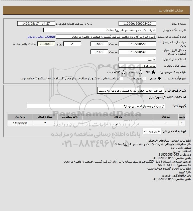 نام دستگاه خریدار:شرکت کشت و صنعت و دامپروری مغان