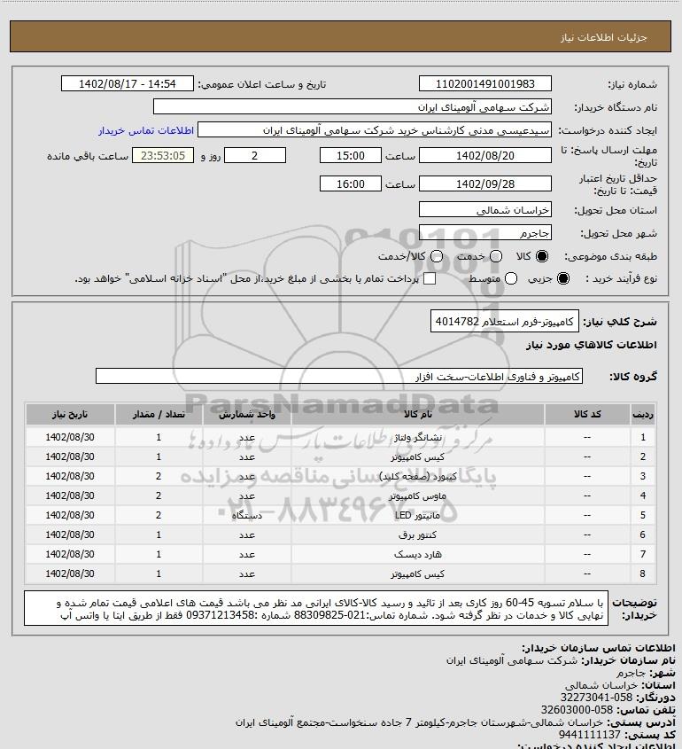 شرح کلی نیاز: کامپیوتر-فرم استعلام 4014782