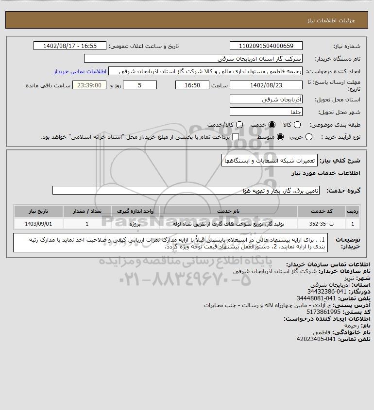 شرح کلی نیاز: تعمیرات شبکه انشعابات و ایستگاهها