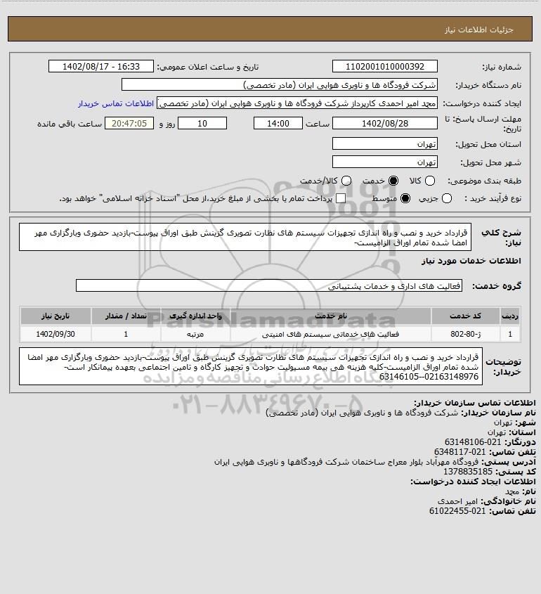 نام دستگاه خریدار:شرکت فرودگاه ها و ناوبری هوایی ایران (مادر تخصصی)