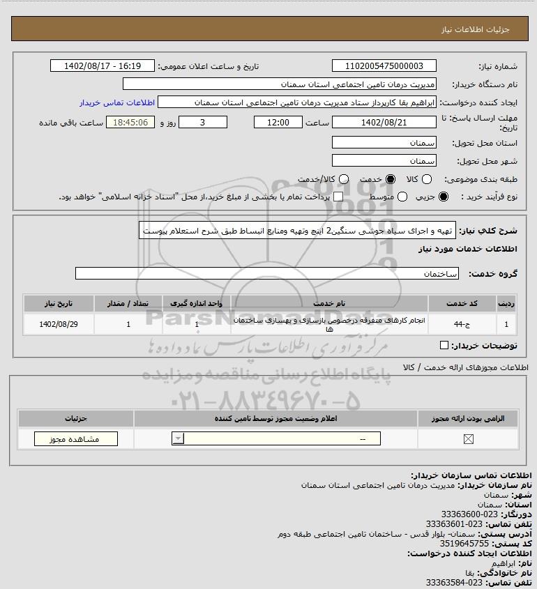 نام دستگاه خریدار:مدیریت درمان تامین اجتماعی استان سمنان